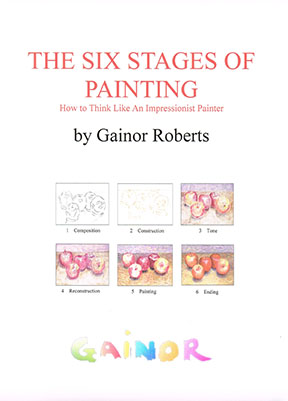 Six Stages of Painting is the 12 page painting manual I give to all my oil painting students. It is a very simple approach to building a canvas, using the methods that were used by many of the Impressionist painters. It is divided into stages, and each stage has a purpose and a technique, such as scumbling an underpainting or reconstructing the form. There is a brief description of each stage, as well as a description of elementary color theory and some inexpensive paint that I like to recommend