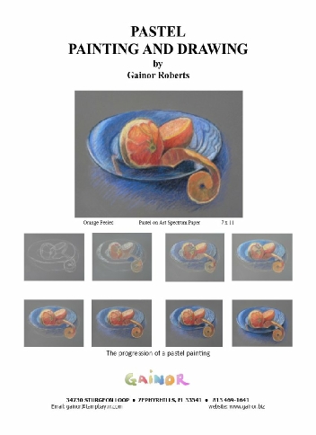 My booklet is a step-by-step demonstration of an orange on a blue plate. It is worked on a lovely sanded paper that grabs a lot of pigment.