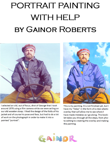 I was incredibly lucky to have studied with two portrait painters who were considered to be among the top artists of their generation; Robert Brackman and Aaron Shikler. I learned so much from both of them, and at one time, when people wanted painted portraits and not photographs, I was able to do quite a few. Since 911 and our unstable economy who can afford it? Time and money are scarce these days. But I found myself missing the challenge of portrait painting and so I decided to teach it, and forget about commissions. I wrote this booklet for my class, using digital photography and a clear plastic overlay as the “helps”.
